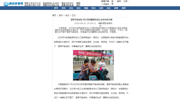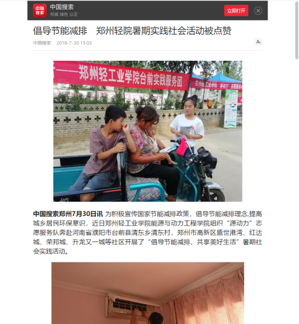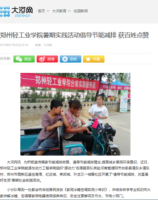 该服务队已被大河网所报道:(郑州轻工业学院暑期实践活动倡导节能减排 获百姓点赞: