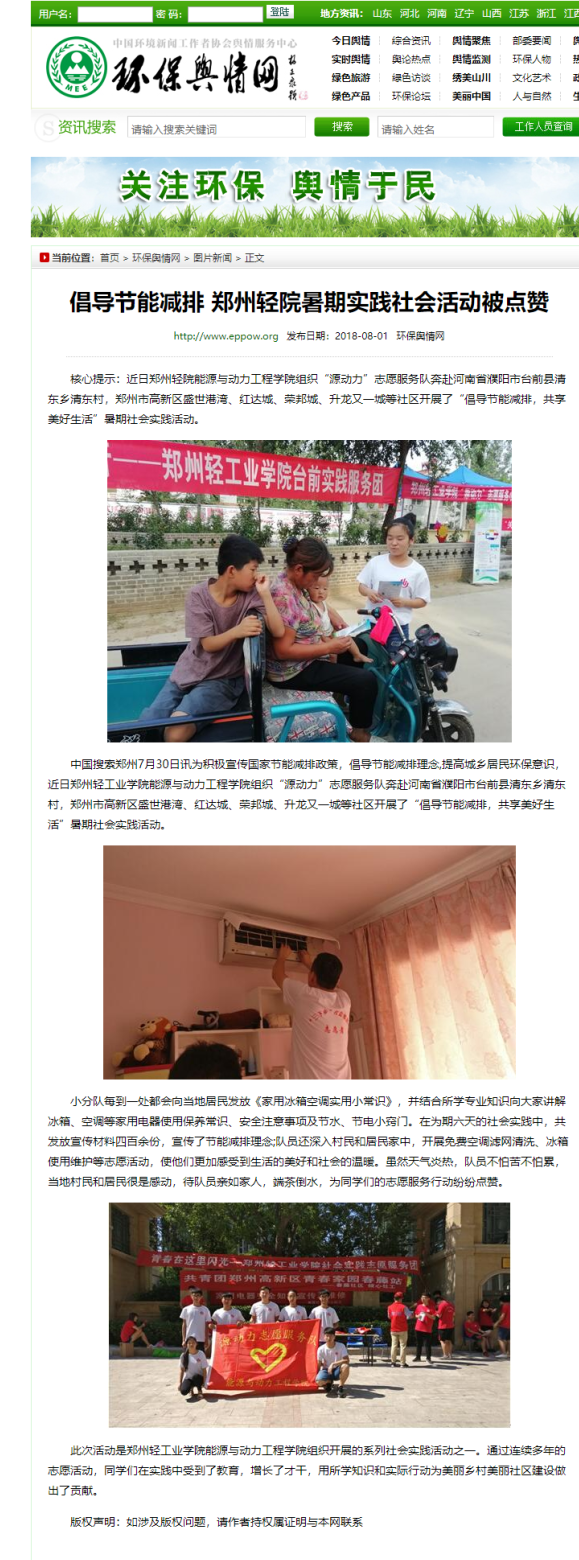 | 2.环保舆情网:倡导节能减排 郑州轻院暑期实践社会活动被点赞 | |||