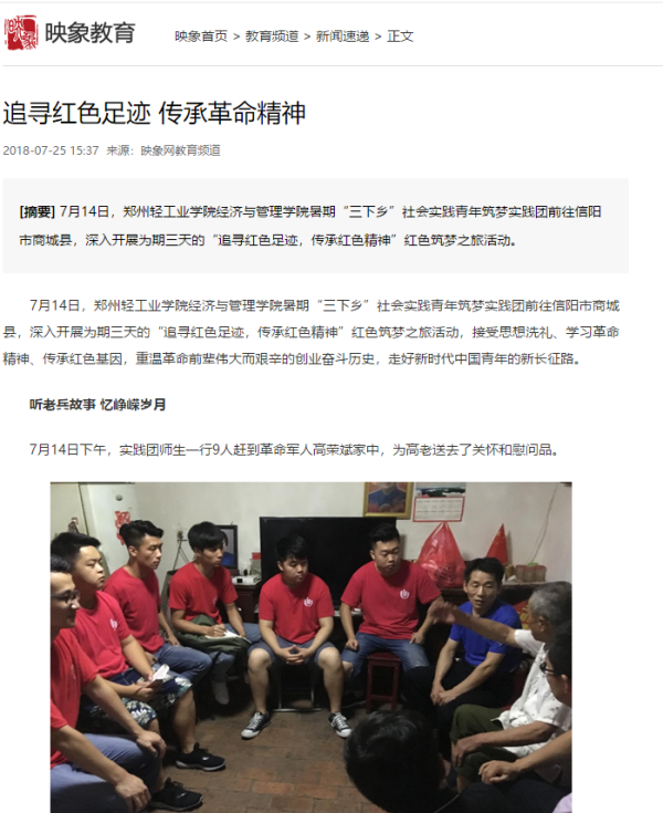 该服务队已被《大河网》报道:(郑州轻院大学生到陈家沟参加社会实践: