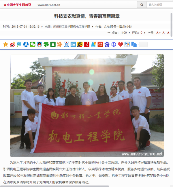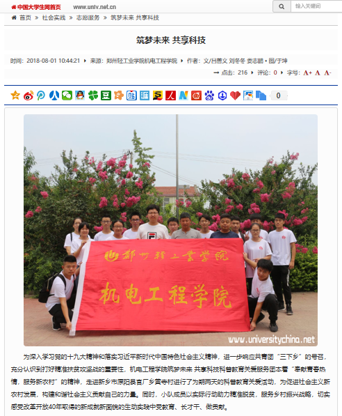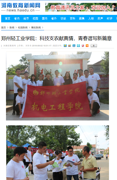 该服务队已被河南教育新闻网所报道:(郑州轻工业学院:科技支农献真情,青春谱写新篇章: