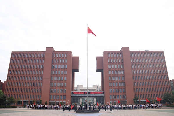 93日清晨,我校4200余名师生迎着朝霞分别聚于东风校区图书馆广场、科学校区主教楼广场和禹州实习实训基地第二实训楼广场上,参加新学期第一天的国旗升旗仪式。