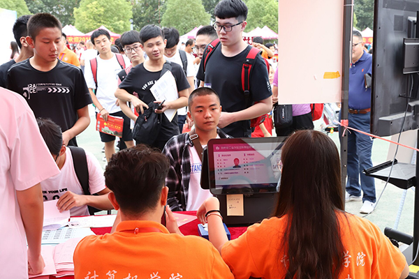 千辛万苦方到此 莫让父母欣慰迟 拿着孩子的通知书留张影,母亲觉得很幸福 学长们都是活雷锋 录入人脸识别系统,大学生活安全从容 只要孩子争气,父亲就有使不完的劲儿 妈妈!!! 到了这个家,有事您说话 您好,加油! 摄影(学生记者):李腾磊 王熙源 张坤鹏 李成北