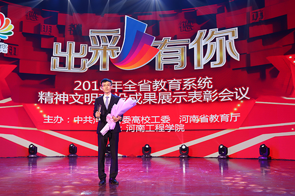 2018年12月19日下午,河南省2018“感动中原”年度教育人物颁奖典礼在河南工程学院举行,省委高校工委专职委员陈垠亭,省委宣传部副部长尹书博,省文明办未成年人工作处处长张万勇,省委高校工委、省教育厅思想政治工作处处长李培俊等领导出席会议。我校计算机与通信工程学院(电子信息工程学院)学生赵永博获此荣誉称号。校党委宣传部部长贾菁菁及计算机与通信工程学院分团委书记沈高峰及学生代表参加颁奖典礼。
