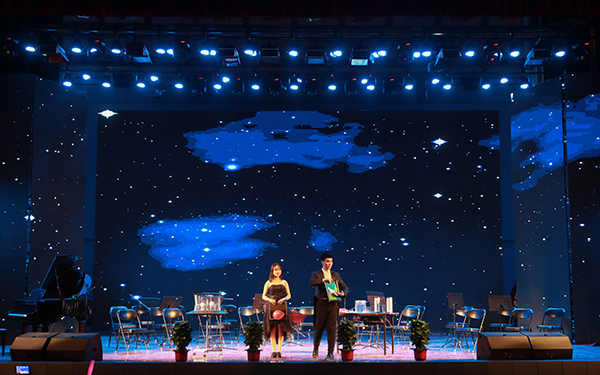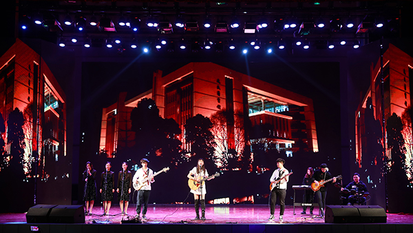 联欢会不知不觉来到中场,现场气氛愈发欢庆热烈,歌曲《从无到有》动听深情,将千般情怀娓娓道来。柔力球表演《大鱼海棠》背景唯美动人,表演者身姿矫健,似在演绎一段令人难忘的回忆。女生小合唱《我只在乎你》巧妙地通过与海内外校友的视频连线展示出广大校友祝福母校、思念母校的游子情怀,令人感动。说唱节目《马克思是个90后》充分展示了90后一代人的青春活力和不俗才艺。令人愉悦的服装表演节目《成长》里既有老师和学生,还有天真可爱的小朋友,老师们换上华丽的服饰行走在舞台上,展现出别样的风采;学生们身着美丽的服装走秀,自信从容得如同职业模特;孩子们经过精心打扮,萌萌的出现在了舞台上,可爱如同嫩芽正和风生长。教职工的歌曲联唱《绒花》,字正腔圆,勾起了人们各自的过往。令人匪夷所思的魔术节目,让人惊喜、惊奇。管弦乐合奏《我的祖国》荡气回肠,特别是二胡响起的时候,真切表现出了轻大学子热爱祖国的深沉悠长。新年就要到了,春天的脚步正在临近,舞蹈《春之声》舞姿优美,舞韵翩飞,让观众产生对春日的向往和对春景的陶醉。雄浑刚健的音律响起,师生共歌一曲《轻大颂》,唱出了轻大的磅礴气势和轻大人的奋斗者情怀。