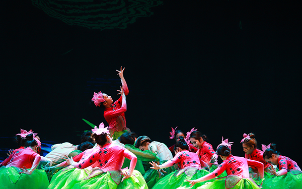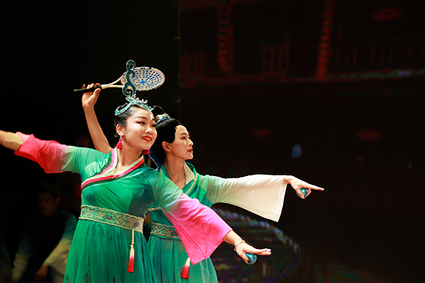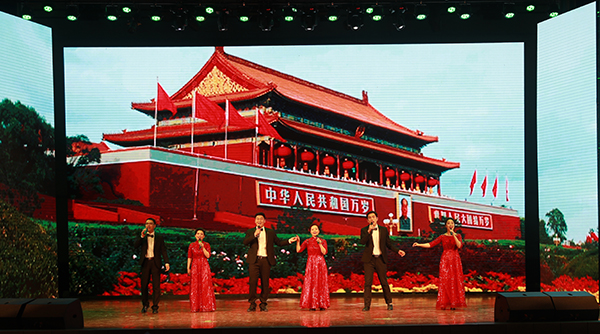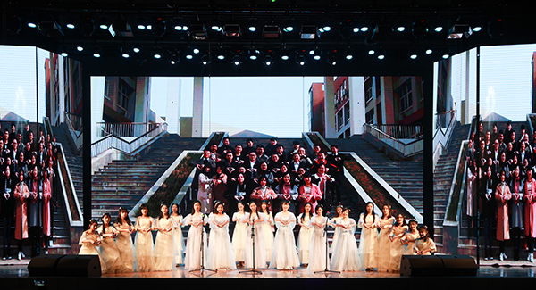 演出结束后,校地领导走上舞台祝贺演出成功,并与参演师生合影留念。