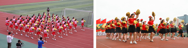 音乐再次响起,学生太极拳表演、教工八段锦表演、学生团体操展示等节目纷纷亮相,3000余名师生以其精彩的表演赢得了现场观众的阵阵掌声与喝彩,集中展现了我校开展阳光体育活动的成果,现场鼓声、欢呼声汇成一片欢乐祥和的海洋,将开幕式表演推向高潮。整场开幕式精彩纷呈、振奋人心,为下一步的比赛做好了铺垫。