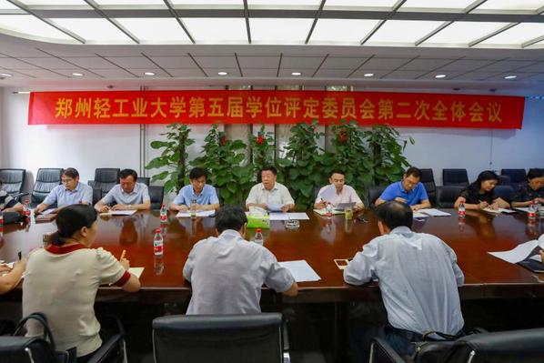 6月19日,郑州轻工业大学第五届学位评定委员会第二次全体会议在东风校区办公楼二楼会议室举行。校长、学位评定委员会主席赵卫东主持会议,副校长、学位评定委员会副主席毛多斌、方少明等22位委员参加会议。