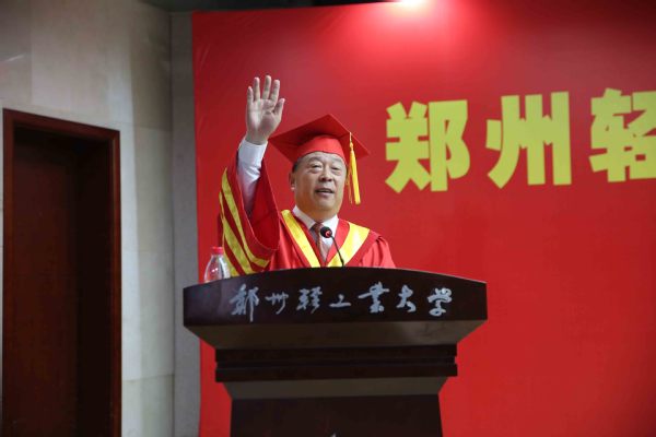 致辞中,赵校长深情回望了同学们在轻大弥足珍贵的大学时光。他指出,同学们一定难忘用热血唱响的“我和我的祖国”,为中华民族巍然屹立于世界民族之林而感到骄傲和荣光;一定难忘用丹田呼喊的“厉害了,我的大学”,为学校的跨越发展而感到欢欣和鼓舞;一定难忘用拼搏写就的“无奋斗、不青春”,为大学里取得的骄人成就而感到幸福和自豪。他强调,同学们经过四年的刻苦学习、努力求知,用勤奋诠释了“为之则易,不为则难”的校训精神,用成绩注解了“务实、朴实、扎实”的轻大文化,用拼搏书写了“无奋斗、不青春”的人生华章,是撑得起信任,经得起考验,扛得起担当的一届毕业生。