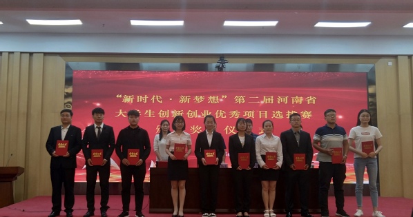 我校“新时代•新梦想”第二届河南省大学生创新创业优秀项目上台领奖