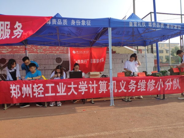 计算机与通信工程学院的手机电脑义务维修小分队师生一行在泌阳县中心体育场开展以“服务社会,e路同行”为主题的义务维修志愿实践活动。队员们进行了手机、电脑等常见问题及网络信息安全知识的宣讲,先后发放200余张宣传页,免费为居民贴手机膜,完成了数台因无法开机、系统损坏等故障电脑的维修工作。队员们通过此次义务维修活动提高了动手能力,以实际行动践行志愿者无私奉献的精神,展现了当代大学生的青春风采。
