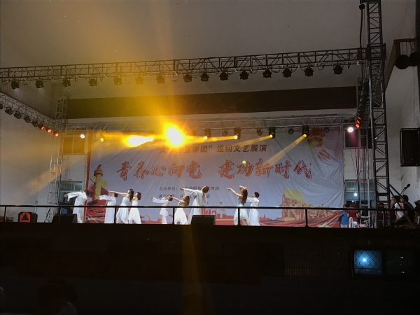 郑州轻工业大学文艺展演宣讲团师生分别在泌阳县中心体育场和泰山庙村文化广场开展巡回文艺展演。演出的节目聚焦青年人新思想、新气象,精彩纷呈、高潮迭起,台下的观众反应热烈,掌声如潮。两场巡演弘扬主旋律,传播正能量,抒发对建国七十周年的美好祝福。本次文化惠民演出活动的开展,让群众在家门口就能欣赏到精彩的演出,对丰富当地群众精神文化生活起到了积极作用,为助力美丽乡村建设营造了良好的精神文化氛围。