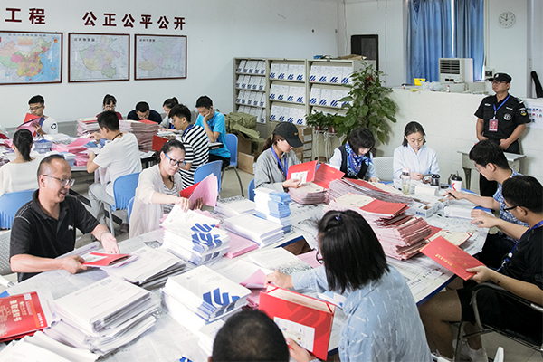 招生录取工作肩负着为学校选拔优秀学生的重任,同时又涉及千家万户,事关考生的切身利益。为确保招生录取工作规范、有序、顺利开展,我校招生工作人员同往年暑期一样,严格执行教育部招生工作政策规定,以强烈的责任感和使命感,切实将“十公开”、“六不准”、“十项禁令”等纪律要求落实到招生录取的每一个环节。在不同批次的录取环节,工作人员不厌其烦地回答着一次次电话咨询、热情周到接待着一个个考生和家长的现场咨询、认认真真地封装寄送着一份份录取通知书,用细心和耐心保障招生录取工作圆满完成。
