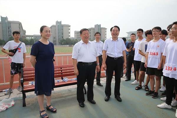 7月31日上午,校长赵卫东、党委副书记马英赴第十一届少数民族传统体育运动会文体展演排练场慰问我校参加开幕式表演训练的学生和带队教师,学生处、团委负责同志陪同前往。