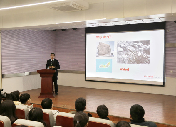 苏泽教授讲述了他为NASA火星上的两个流动站上使用的传感器的设计过程和传感器在火星上的使用成效。他用视频向学生们展示了流动站在火星上的运作方式,并让学生参与进来,以活动的形式让学生们明白相关专业在火星上甚至在其他领域的重要性。