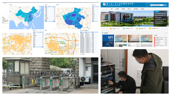 支撑抗疫工作重在实用。围绕克服人员多、分布广等困难,组织研发疫情防控信息管理系统,每天采集全校师生和服务人员基本医学信息和假期轨迹,实现大数据统计分析和可视化图形展示,为抗疫工作提供坚实数据支撑。支撑网络教学重在实效。围绕停课不停学,制定《关于在线教学的有关要求》,遴选在线教学核心平台,发布《在线教学能力网络培训安排》,撰写操作指南和培训课程,建立校、院两级技术服务保障团队,下沉到教学一线提供高效的技术支持。支撑日常工作重在实际。围绕推动日常办公、科学研究、复学复课等,搭建临时VPN服务,开通CARSI电子期刊资源的校外访问通道,建设完善两校区人脸识别进出控制通道等;结合实际,挖掘资源,保障学校各项日常工作正常运。