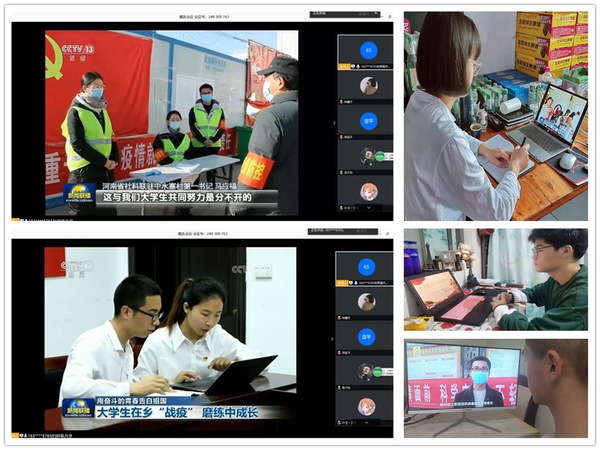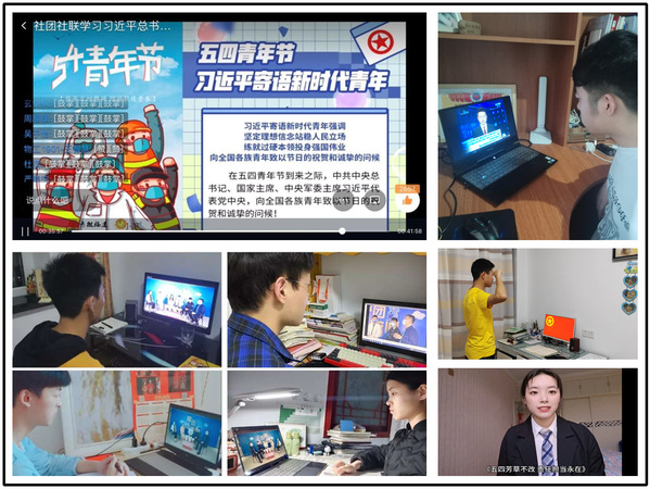 组织全校各级团组织和广大团员青年学习习近平总书记五四寄语精神,参与团中央“让青春为祖国绽放”网上主题团日活动,学习团中央“五四青年节”和河南青年讲师团《战“疫”烽火,点燃青春赞歌》等网上团课,观看“豫团直播间——绽放战疫青春,坚定制度自信”五四专题直播活动,开展线上新团员入团宣誓暨老团员重温入团誓词仪式、线上朗诵活动、五四专题知识竞答、讲述身边的战“疫”故事等团日活动,通过系列活动,广大团员青年受到极大鼓舞,掀起了学习的热潮。大家纷纷表示,要牢记总书记对广大青年的殷切嘱托,在担当中历练,在尽责中成长,让青春在实现中国梦的奋进追逐中展现出勇敢奔跑的英姿。