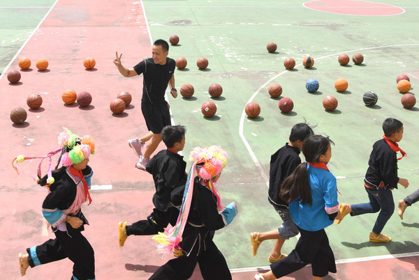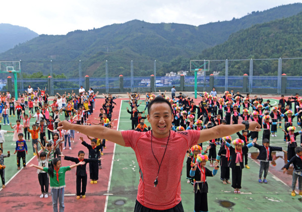 当欢快的大课间铃声响起,山谷中传来孩子们的欢笑声。在操场上,一名年轻的体育教师早就等候在那里,如往常一样,他带领全校学生做广播体操、8分钟趣味往返跑、进行篮球训练……