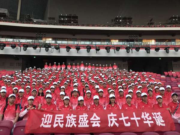 9月8日,运动会开幕式隆重举行。按照安排,我校服务的是半个会场,354名志愿服务者们首先要从地下一层往最高8层楼的看台搬运上万件的物资,4万个观众礼品袋,平均每人141件。准备就绪后,观众们入场,根据28个猫洞分组,志愿者们井然有序地引导4万观众入座。节目开始后,志愿者们站在固定的位置,维护现场秩序、带动比赛气氛。当天体感温度36度,地表温度50度左右。领队老师朱一帆的手机响声此起彼伏,“15号猫洞有同学晕倒了,赶紧让他下去休息,请替补同学过来。”“7号猫洞晕倒一个……”“20号猫洞也有晕倒的……”全天因天气炎热、补水不足晕倒了20多名志愿者,11名替补志愿者不停地穿梭于各个猫洞。晕倒的志愿者稍作休整,又不听劝阻地回到自己岗位,替补志愿者就这样全天穿梭着。夜幕降临,一天繁杂的工作终于结束了,白天顾虑喝水上厕所影响工作,现在可以痛痛快快地喝了。但是看到塔沟武校的小演员们饥渴的样子,志愿者们纷纷把自己仅存的一瓶水送给他们。在台上虎虎生风的小演员们,瞬间变成童真的孩子,一个个笑逐颜开,开心地道声谢谢,就咕咚咕咚地畅饮起来。