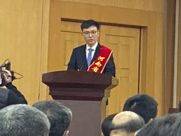 近日,第十四届河南省见义勇为英雄模范表彰大会在河南人民会堂召开。我校计算机与通信工程学院硕士研究生赵永博荣获第十四届“河南见义勇为英雄”称号。会上赵永博作为见义勇为英雄和模范代表宣读“河南省第十四届见义勇为英雄模范倡议书”。