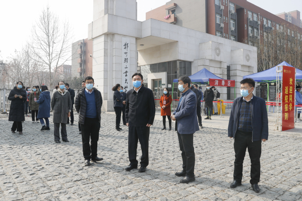 在校门口返校疫情防控现场,校领导与工作人员进行深入交谈,了解学生报到人数、学生报到服务细节等情况,并反复嘱咐工作人员要以服务学生为中心,从学生角度出发,尽量多为学生考虑,让返校学生感受到学校大家庭的温暖与关切,做到热情接待、统筹安排、协调有序、细致周到。校领导还与正在办理报到手续的学生进行了交流,了解学生寒假期间的学习生活情况,叮嘱返校学生们入校后要尽快向家长报平安,有困难要及时向辅导员、班主任反映,返校后尽快进入状态,刻苦学习、积极实践、实现梦想。