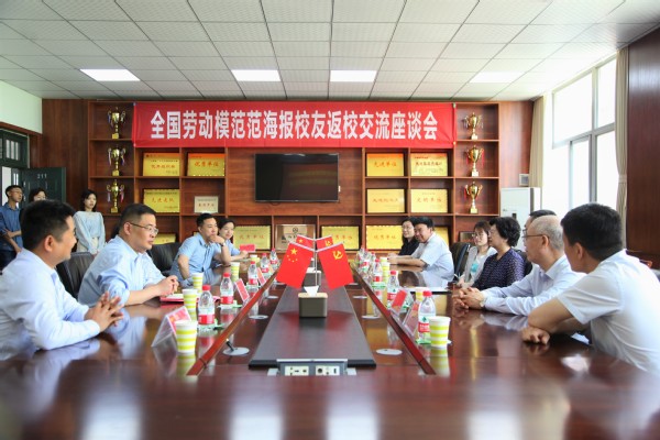 报告结束后,在食工楼211会议室举行交流座谈会。王新杰对范海报校友取得的成就表示衷心祝贺。她指出,40多年来,学校为党和国家培养和输送了大量的优秀人才,他们扎根基层,坚守平凡,辛勤耕耘,为地方经济社会和行业发展做出了突出贡献;范海报同志作为广大校友中的一员,他的杰出成就是有目共睹的,广大校友为他骄傲,母校更为他自豪。她强调,校友是学校最大的财富,相关部门、学院要认真做好校友联络工作,聚合人脉资源,推进校友与母校在产学研等方面的合作。随后,王新杰为范海报颁发校友讲坛主讲嘉宾聘书,各部门参会同志就专业设置、学科建设、师资队伍、人才引进、学生创新能力培养和素质教育、校企合作等方面进行了探讨交流。
