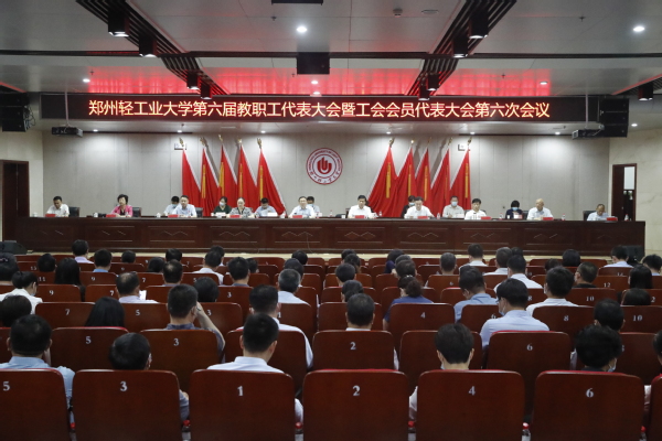 5月13日,郑州轻工业大学第六届教职工代表大会暨工会会员代表大会第六次会议在科学校区图书馆报告厅举行。校领导俞海洛、黄荣杰、马英、张志坚、刘新田、毛多斌、王新杰、张晓根、方少明、李世瑛出席会议。会议由工会主席李世瑛主持。