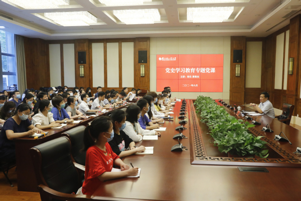 6月23日下午,校长黄荣杰在科学校区双创中心第一会议室为师生上党史学习教育专题党课。部分教师代表、学生代表聆听了本次党课。