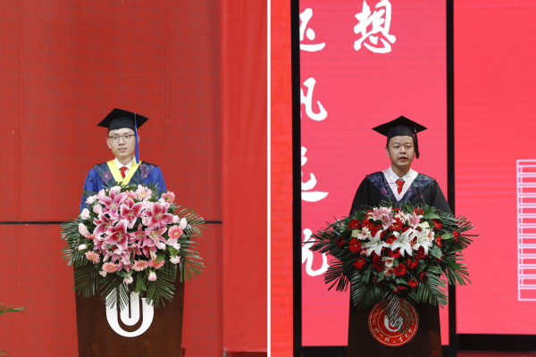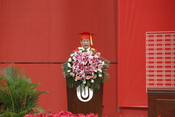 黄校长在致辞中充分肯定了毕业生们取得的成绩,并代表所有的师长送给全体毕业生四句话,作为离别赠言。一是要勇担时代重任,矢志报效祖国。要牢记习近平总书记的殷殷嘱托,努力成为堪当民族复兴重任的时代新人;要志存高远、脚踏实地,坚定理想信念,培育高尚品格;要积极投身强国伟业,勇于到艰苦环境、基层一线中接受洗礼、经受锻炼;要勇于创新创造,始终艰苦奋斗,用奋斗擦亮青春底色、用智慧开创美好未来,把青春华章写在祖国大地上,让青春在为祖国、为民族、为人民、为人类的不懈奋斗中绽放绚丽之花。二是要终身学习进取,书写骄人业绩。要终身学习进取,不断提高内在素质,锤炼过硬本领,努力跟上时代发展的脚步,真正成为时代发展的参与者和建设者,用青年人的志气和锐气,书写好属于自己、无愧一生的靓丽答卷;要牢记“为之则易,不为则难”的校训,“朴实、务实、扎实”的校风,从大处着眼,从小处着手,自觉成为有本领、能吃苦、敢创新的实干家,努力干出一番无愧于自己、无愧于青春、无愧于时代的骄人业绩。三是要积极面对生活,磨砺高尚品格。要牢记逆境是强者的试金石,遭遇不公才能懂得正义,品尝背叛才能领悟忠诚,品味孤独才能审视自我,战胜挫折才能实现超越;要永葆本真之美,时刻保持对生活的热爱,始终做到心里有梦、眼中有光、脚下有路;要学会修身立德,始终诚实做人、诚信做事,始终坚持原则、恪守正道,以豁达的心态直面人生的高潮与低谷,真正做到“风雨兼程途径日暮不赏,皓月当空勇敢乘风破浪”,积极自信地去成就有意义、有价值的未来。四是要不忘师生情谊,始终心存美好。要珍惜这段岁月,珍藏这份美好,带着师生之间的浓浓情意,勇敢去书写更加美好的未来;要牢记,大家是“轻工大最想留住的幸运”,也希望大家能感恩母校的辛勤培育,感恩师长的谆谆教诲,感恩同学的深情厚谊,时刻做一个心存美好的人。