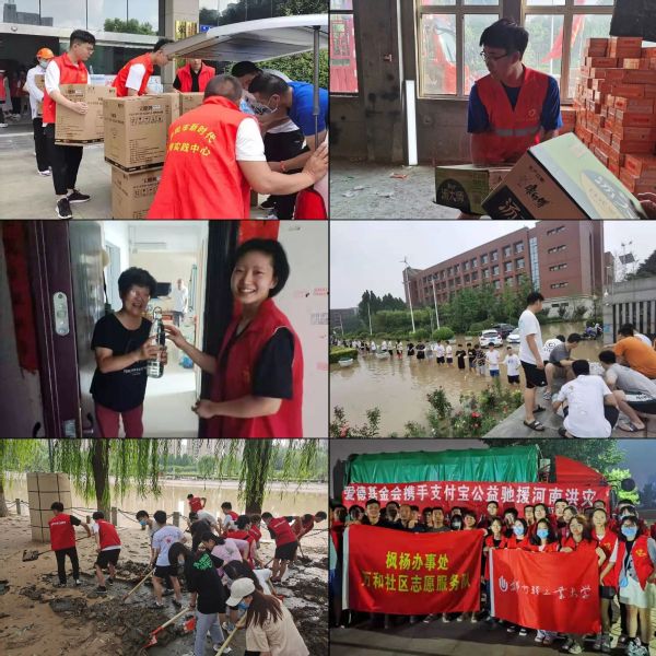 近日,受强降雨天气影响,郑州市及周边地区多处设施遭到损坏。汛情无情,人间有爱,材料与化学工程学院众多师生积极响应号召,闻“汛”而动,迎难而上,积极投身防汛救灾行动中,有的奔赴受灾一线参加防汛救灾,有的在后方做志愿者服务受灾群众,他们将党史学习教育的成效转化为抗汛救灾的生动实践,在防汛救灾中彰显青春力量。