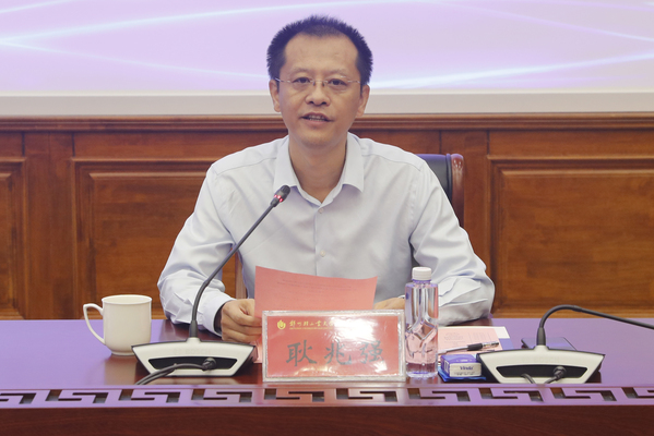 新道科技股份有限公司副总裁耿兆强代表大赛支持单位向参加此次大赛的师生表示热烈欢迎,向大赛承办方为此次大赛付出的辛勤工作表示感谢。耿博士简要介绍了新道科技股份有限公司概况,他指出,沙盘模拟经营大赛自2005年举办第一届,至今已成功举办十六届,深受广大师生的喜爱,对提高学生的创新意识和创业能力起到了积极的推动作用,并预祝同学们取得优异成绩。