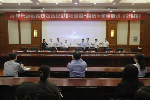 2021年9月25日上午,由我校承办的第十七届全国大学生数智化企业经营沙盘大赛河南省赛暨第一届河南省YonBIP商业创新大赛(财务大数据赛项)河南省总决赛在科学校区顺利开幕。比赛由中国高等教育学会高等财经教育分会指导、中国商业联合会主办、郑州轻工业大学承办、河南农业大学协办、新道科技股份有限公司技术支持,来自郑州大学、河南财经政法大学、河南农业大学、河南理工大学等我省70所高校、两赛项共计450多支队伍,超2000名师生参加本届大赛。校党委书记、校长黄荣杰,河南农业大学校长介晓磊,新道科技股份有限公司副总裁耿兆强,新道科技股份有限公司河南省区总经理张林峰及学校相关单位负责人出席开幕式。仪式由我校副校长刘新田主持。