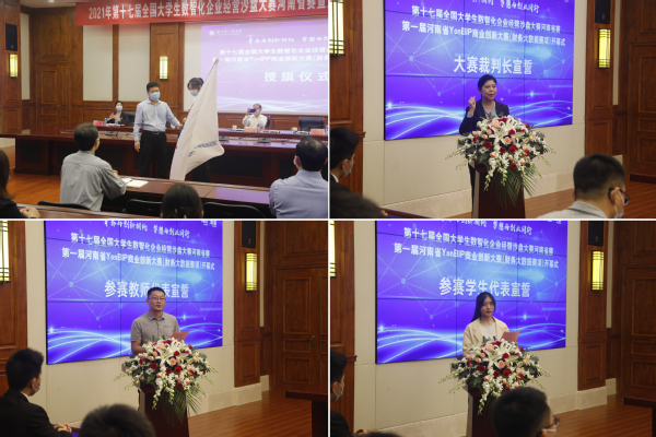 校党委书记、校长黄荣杰向参赛学生代表授旗 大赛裁判长、参赛教师代表、参赛学生代表宣誓