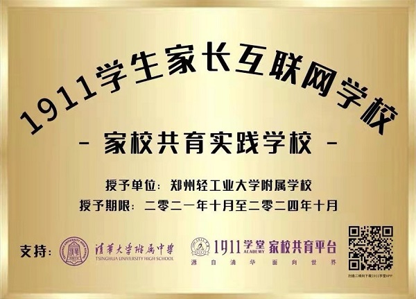 为落实教育部“双减”政策、深度构建家校共育,10月21日下午,附属学校携手1911学堂家校共育平台正式启动家校共育项目建设,并于校内共同举行了“1911学生家长互联网学校实践学校”授牌仪式。清华大学附属中学校长助理、1911学生家长互联网学校校长房超平、1911学堂执行总裁唐冕出席授牌仪式并讲话,附属学校全体教师、学生家长代表参加了活动。郑州日报、河南电视台民生频道、映象网等媒体为启动仪式做了现场报道。