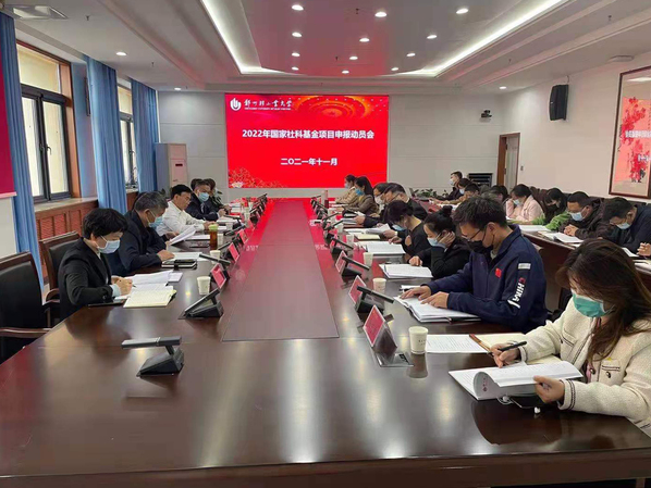 近日,学校2022年度国家社科基金申报动员会在科学校区办公楼206会议室召开。各人文社科学院负责人、学术骨干代表、社会科学管理处全体成员参加了会议。副校长方少明出席并主持会议。