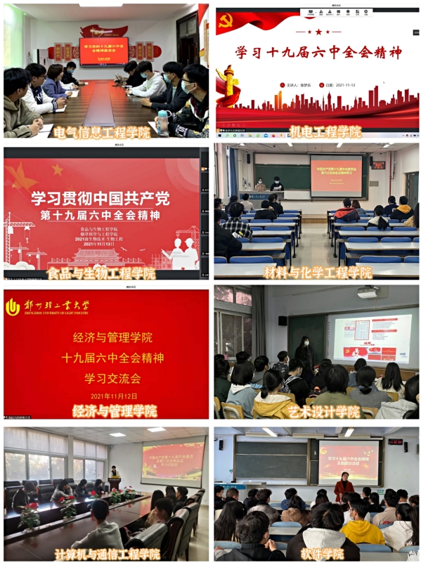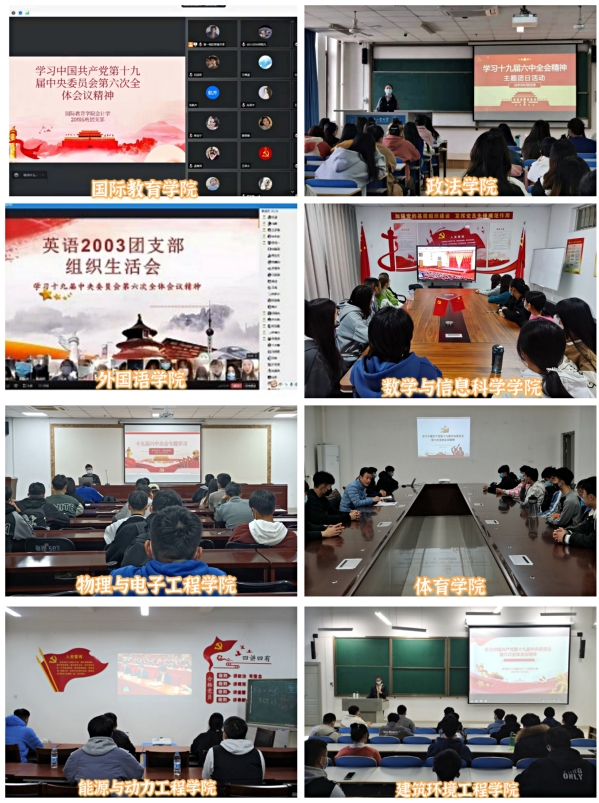 11月12日—11月16日,各学院采用线上线下相结合的方式,通过团委委员(扩大)会议、主题团日活动、团委书记讲团课、学习交流会等形式,重点学习了《习近平关于<中共中央关于党的百年奋斗重大成就和历史经验的决议>的说明》《中国共产党第十九届中央委员会第六次全体会议公报》《中共中央关于党的百年奋斗重大成就和历史经验的决议》等文件精神,引导广大青年深刻学习领会党的十九届六中全会精神,切实把思想和行动统一到全会精神上来,在新的征程中立足岗位、勇于担当,为中华民族伟大复兴贡献青春力量。