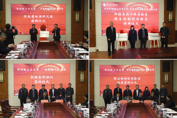 双方领导为共建“河南省白酒研究院”“仰韶生物工程实验室”“微生物制剂实验室”揭牌。渑池县领导为我校6名专家教授颁发了经济发展顾问聘书。(通讯员:李玉)