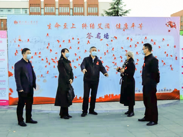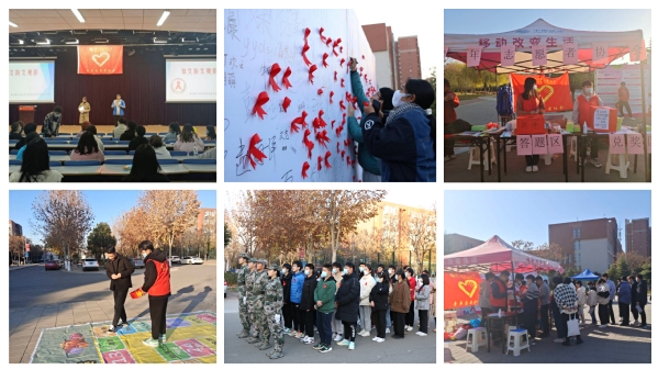 为广泛普及艾滋病防控知识,进一步提高和增强广大师生对艾滋病防治知识的了解,营造师生积极参与防艾抗艾的校园氛围,在今年的11月—12月“世界艾滋病日”期间,郑州市疾病预防控制中心联合校医院、党委学工部、党委研工部、校计划生育办公室、校团委和青年志愿者协会开展了“知艾防艾,青春无艾”艾滋病防控知识宣传系列活动。期间,副校长苏东民出席了本次活动的知识竞答、签名祈福和健康跑等环节活动,1000余人次师生参与了知识宣传系列活动。