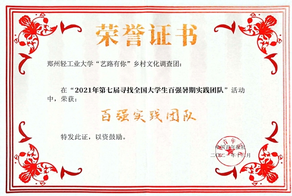 近日,中国青年报社联合全国千所高校开展2021年第七届寻找“全国大学生百强暑期实践团队”活动评选正式结束,12月9日,由广东医科大学承办的线下交流会顺利召开。我校艺术设计学院组建的“‘艺路有你’乡村文化调查团”荣获全国“百强实践团队”荣誉称号,也是我校首获全国“百强实践团队”类评选殊荣。