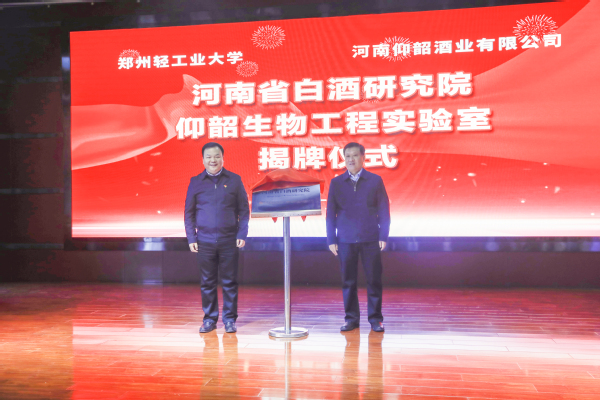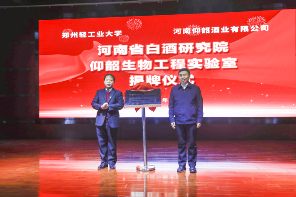 副校长方少明和仰韶酒业党委副书记、总经理郭富祥为仰韶生物工程实验室揭牌