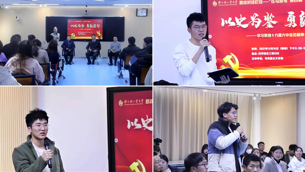 近日,我校首个师生思政对话栏目“在马言马”第四期顺利开讲,对十九届六中全会精神进行集中宣介。党委讲师团成员以及来自全校各专业50余名师生参加对话。