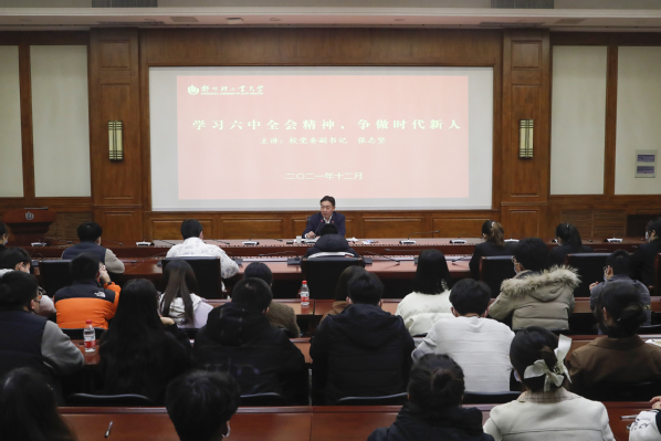12月30日,校党委副书记张志坚为青年师生讲专题思政课,部分专职团干部,校院两级学生会、研究生会和学生社团代表,青马班学员、青马社团会员、班级团支书代表参加思政课学习。