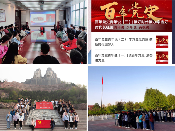 设立“导思讲堂”“课前十分钟学党史”等讲述红色故事。15名辅导员依托“党史宣讲”比赛,当好百年党史讲解员。实地探访“晋冀鲁豫第九纵队纪念馆”等地,拍摄《师说》党史微课10期,多部作品被中国大学生在线、河南高教等转载,阅读量近十万余次,两部作品入选“百年珍贵记忆-全国高校庆祝中国共产党成立100周年原创精品档案”。《灾难磨砺精神爱国凝聚力量》获得全省“党的创新理论万场宣讲进基层”理论宣讲大赛视频类一等奖。“探寻豫西抗日初心 赓续百年红色基因 ”示范团课,荣获全国共青团系统热文榜单首位,阅读量达10万+,在广大青年学生中引起强烈反响。