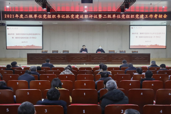为深入贯彻党的十九届六中全会精神和习近平总书记关于全面从严治党的重要论述,推动基层党建责任制落细落实落到位,1月18日,我校在科学校区图书馆学术报告厅召开2021年度二级单位党组织书记抓党建述职评议暨二级单位党组织党建工作考核会。全体校领导出席会议,二级单位党组织书记、党委职能部门负责同志和党员代表参加会议。会议由党委副书记马英主持。
