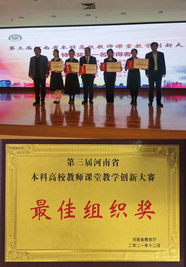 近日,河南省教育厅下发了《关于公布第三届河南省本科高校教师课堂教学创新大赛获奖名单的通知》,我校参赛教师陶静以青年工科组第一名的成绩获得特等奖,吴学红和谷培培等2位老师获得一等奖,董彩文、郭歌、刘兴华、崔潇月和张单等5位老师获得二等奖。