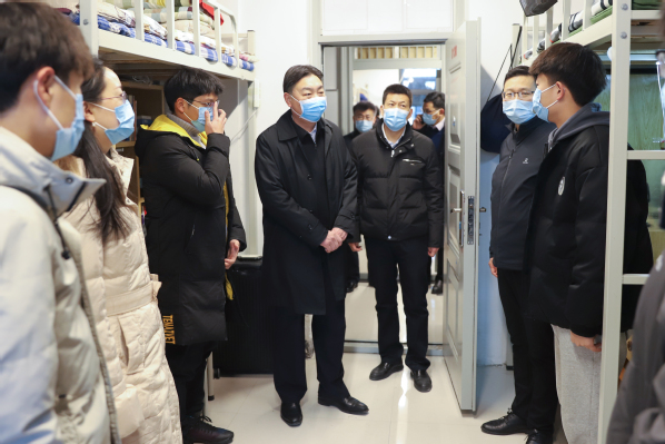 校领导先后来到校门疫情防控点、核酸检测点、学生宿舍、食堂等地点,与返校学生亲切交谈,关切询问返校方式、防护措施等情况,叮嘱他们要注意加强返校后的个人防护,保持良好心态,积极配合学校做好疫情防控工作,返校后尽快进入状态、刻苦学习、积极实践、实现梦想。在与工作人员交谈时,校领导详细询问工作流程、休息就餐、学生报到、值班值守等相关情况,对工作人员坚守岗位、担当作为的敬业精神和奉献精神给予了充分肯定,并向坚守在疫情防控一线的同志们表示慰问和感谢,叮嘱大家要严格执行防疫规定,从严从细落实防控措施,切实做好学生返校工作,同时也要保重身体、做好防护。