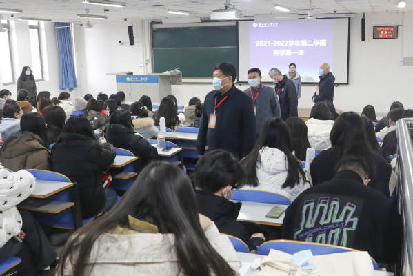 校领导深入教室教学一线,向全体师生致以新学期的问候,并对教师到岗、学生出勤、教学环境、师生风貌、教学设施及疫情防控等方面情况进行巡查,对发现的问题现场解决,为更好地服务教学提出了具体工作要求。