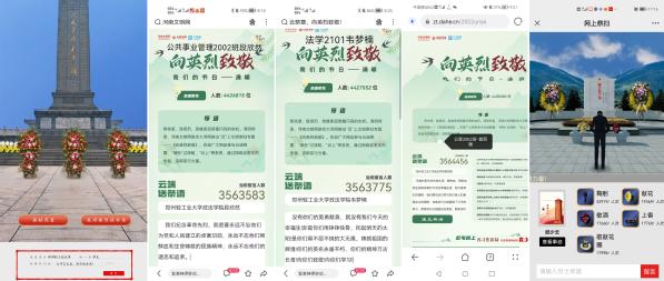 机电工程学院、电气信息工程学院、物理与电子工程学院、能源与动力工程学院、建筑环境工程学院等广泛组织团员青年通过“中国文明网”“中华英烈网”“团中央网上祭英烈小程序”“河南文明网”等网络平台学习革命先烈为祖国和人民抛头颅、洒热血的感人事迹,使同学们深刻地体会到了先烈们坚贞不屈、英勇无畏的高贵品质和革命精神。活动中广大青年师生借助网络向革命先烈鞠躬、献花,并在追思墙上留言,充分表达对革命先烈的深切缅怀和崇高敬意。