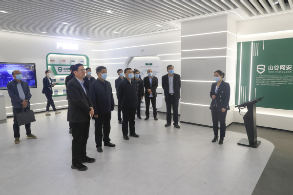 黄荣杰一行实地参观了山谷网安科技股份有限公司、河南众诚信息科技股份有限公司、河南拓普计算机网络工程有限公司、河南金明源信息技术有限公司的运营环境,了解了企业发展现状和招聘需求,听取了用人单位意见建议,对学校人才培养、学科建设、科研平台、2022届毕业生就业情况等进行了介绍。