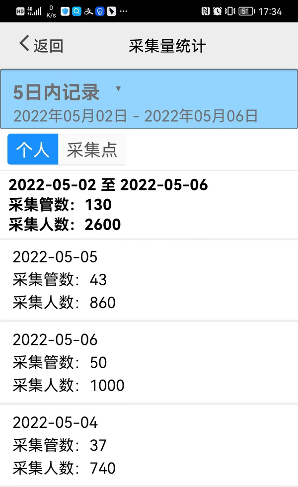 5月6日,继续……完成50管、1000人次的扫码登记工作。