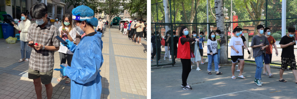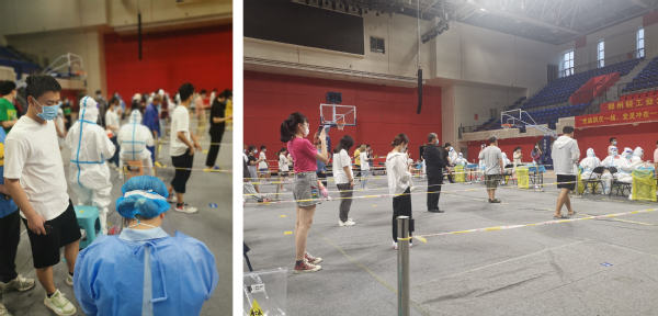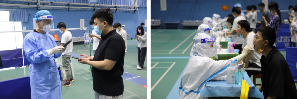 11:00 校领导黄荣杰、张志坚、张晓根等来到核酸检测现场,查看情况,协调解决问题。作为志愿者,深切感觉到学校对此次核酸检测工作的高度重视,对师生身体健康的关注关心。